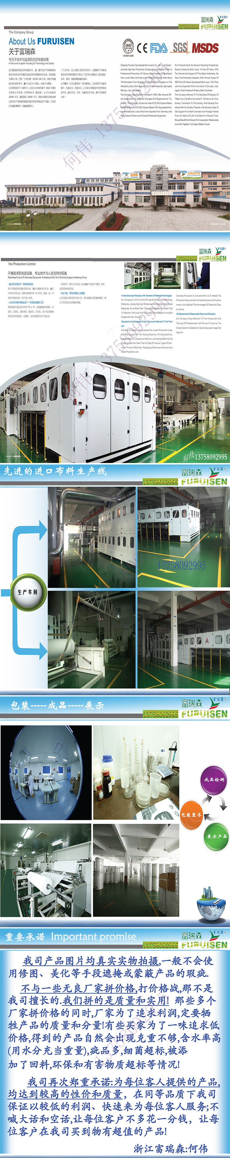 本公司引進(jìn)多條具有先進(jìn)水平的水刺無(wú)紡布、針刺無(wú)紡布、熔噴無(wú)紡布、熱軋無(wú)紡布、聲波、復(fù)合機(jī)、30多臺(tái)多種類型的無(wú)紡布制品機(jī)、點(diǎn)斷機(jī)、全自動(dòng)的濕巾機(jī)生產(chǎn)流水線,除了生產(chǎn)多種常規(guī)和非常規(guī)的水刺、針刺、熔噴、熱軋無(wú)紡布外,還可以把我司生產(chǎn)的多種無(wú)紡布布料按照客人任意要求做成多種規(guī)格的無(wú)紡布制品(可以直接進(jìn)入市)。是目前國(guó)內(nèi)無(wú)紡布種類比較齊全,而又可以“從生產(chǎn)布到制品一條龍”統(tǒng)一控制生產(chǎn)的出口型工廠。